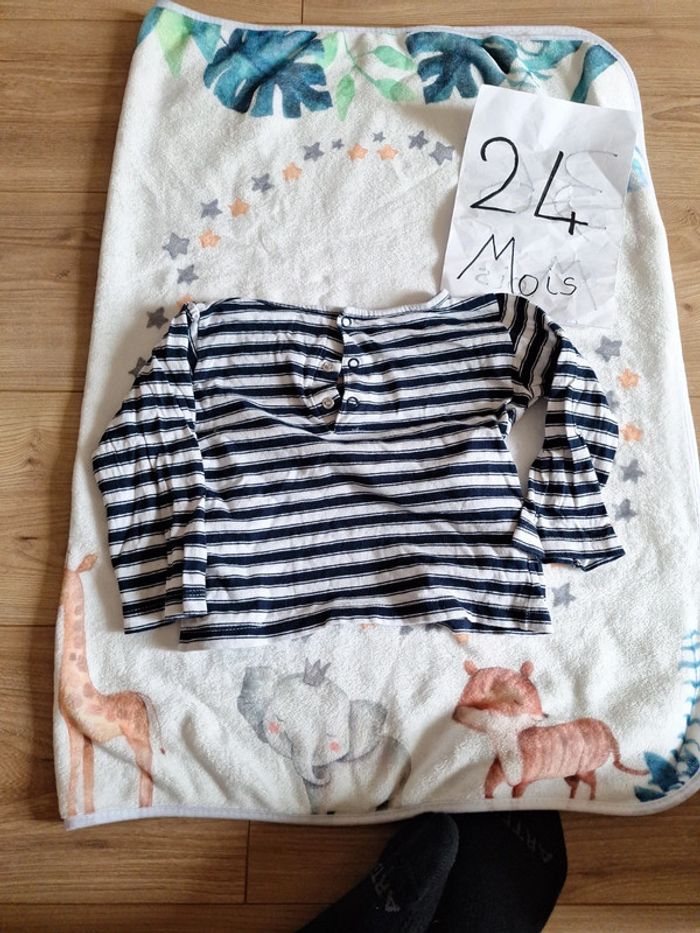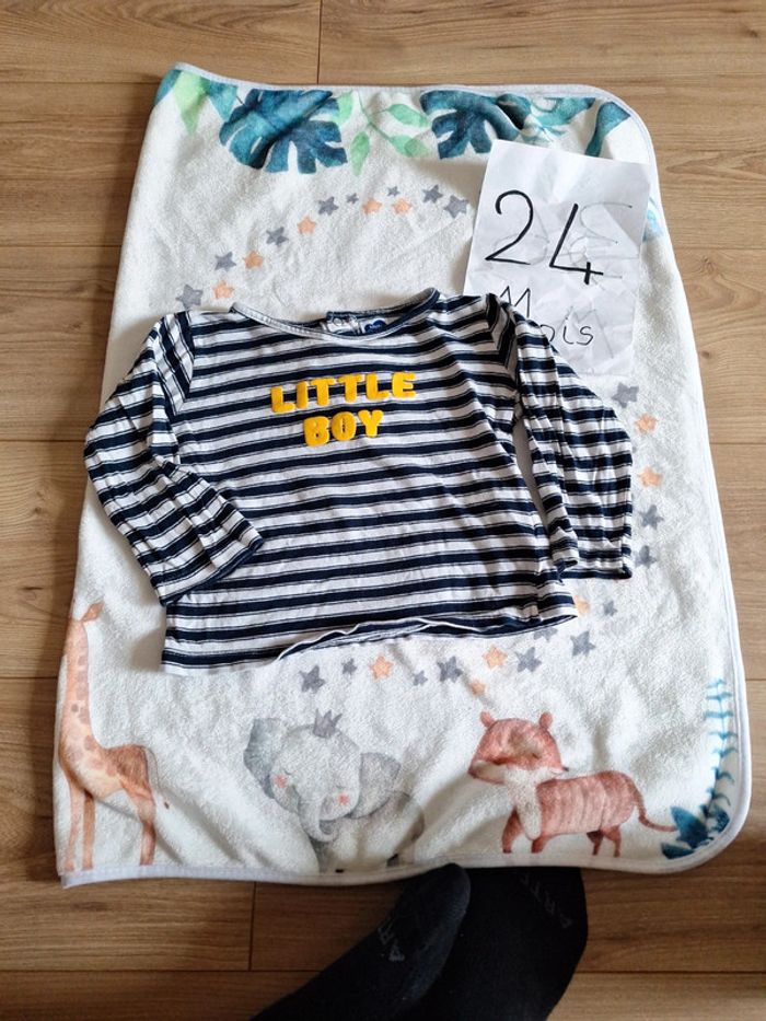 Tee-shirt manches longue Taille 24 mois Marque mots d'enfants Little Boy Bleu marine et blanc rayé Très bon état #24mois #24moisgarcon #garcon24mois #pingpong1994_24mois #pingpong1994_2ans
