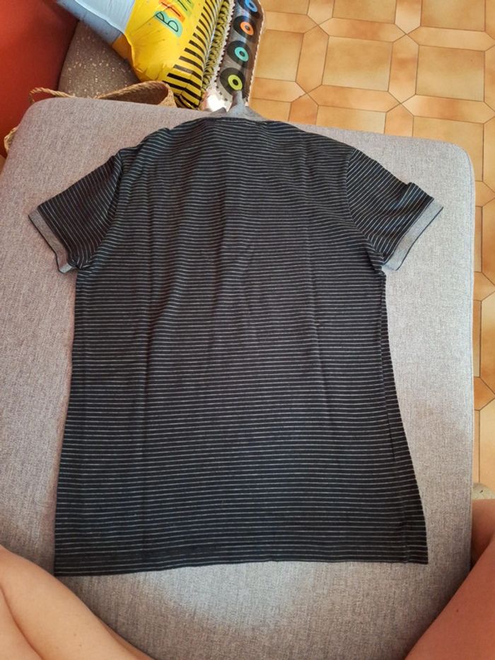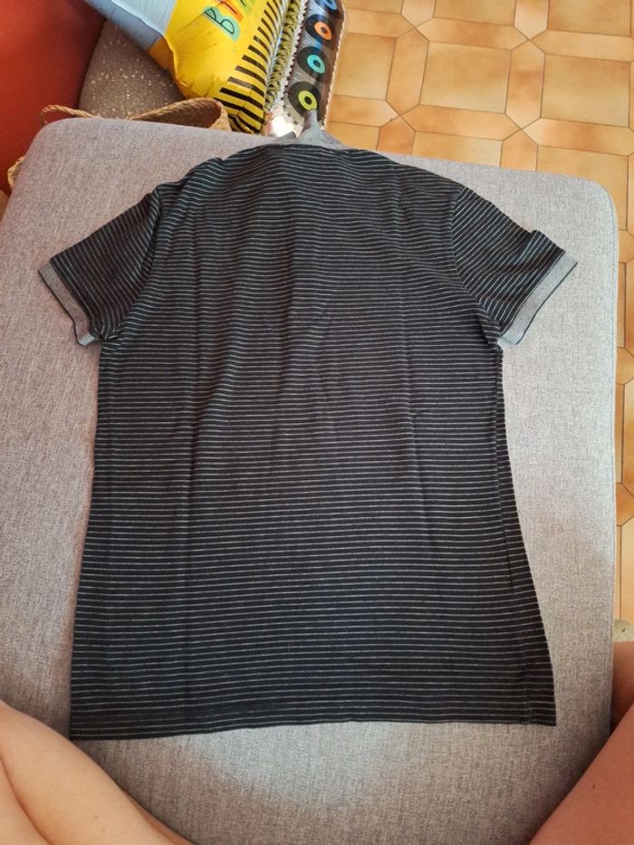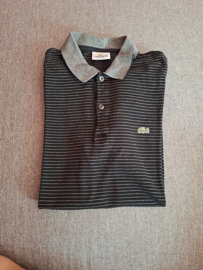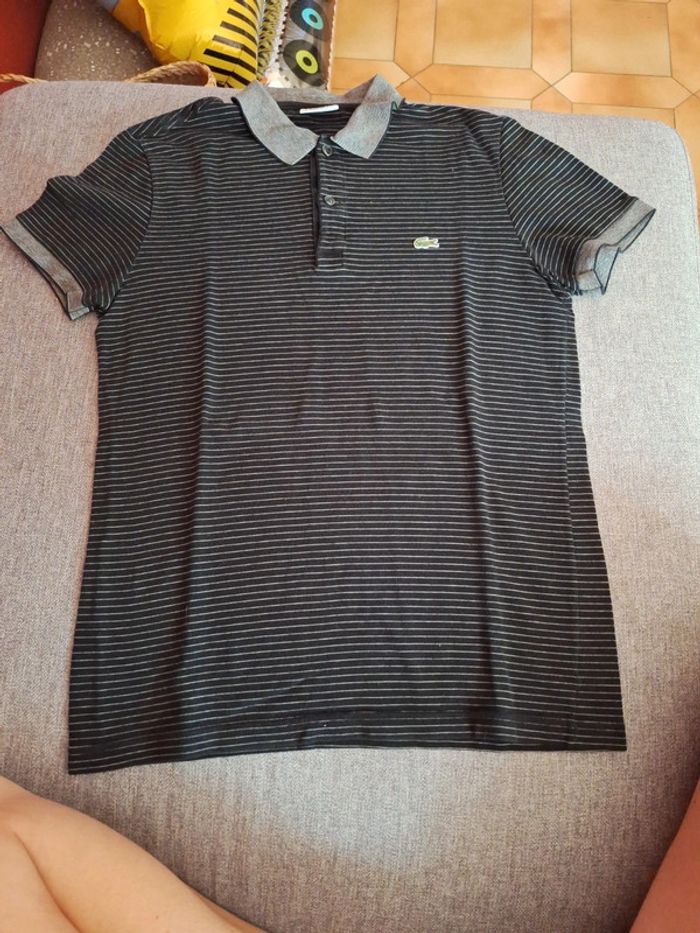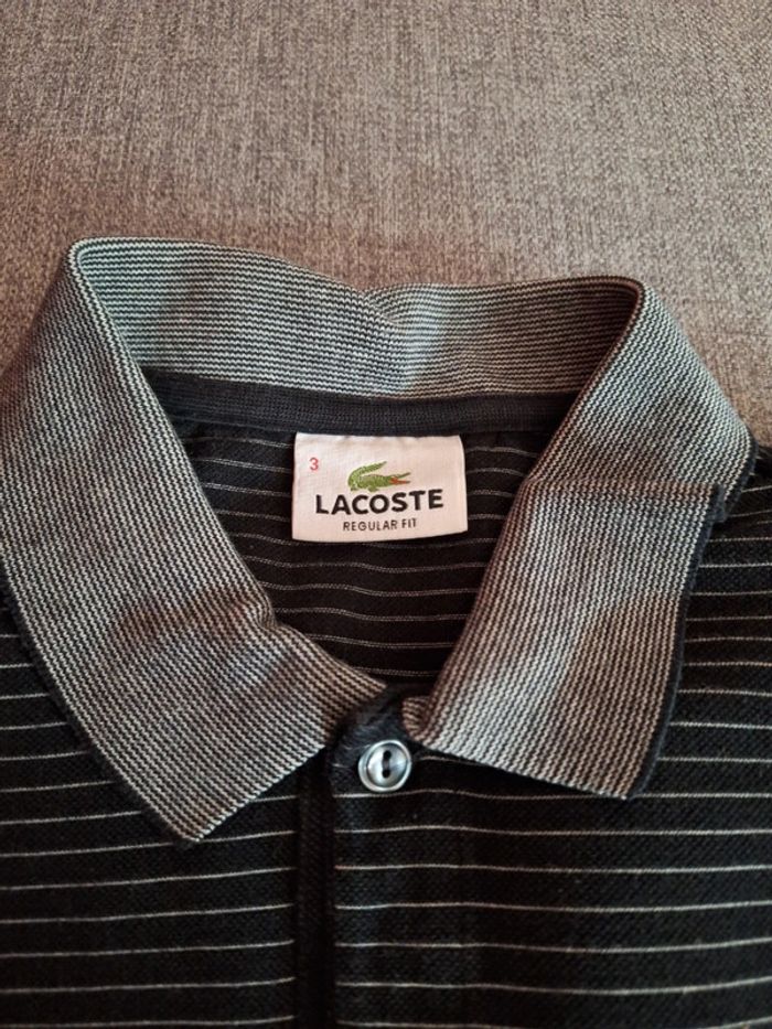 Polo manches courtes Marque Lacoste Noir rayé blanc Col et manches grises Regular fit Taille 3 Neuf