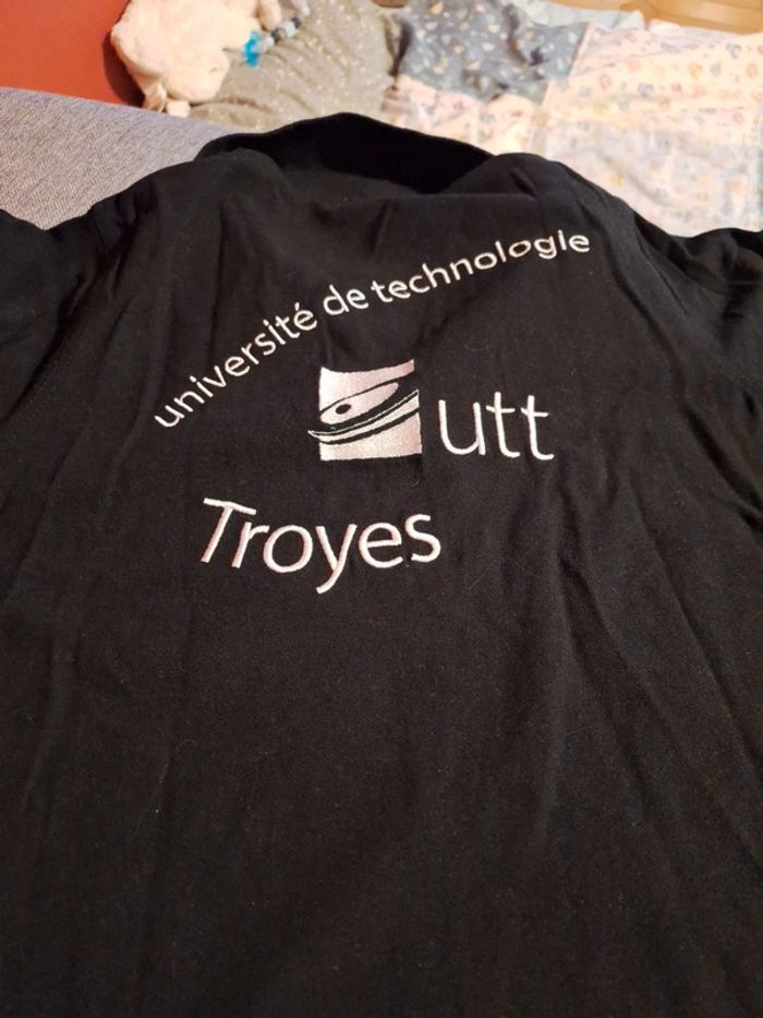 Polo manches courtes noir brodé Université de Technologie de Troyes Taille XL Modèle femme cintré Très bon état
