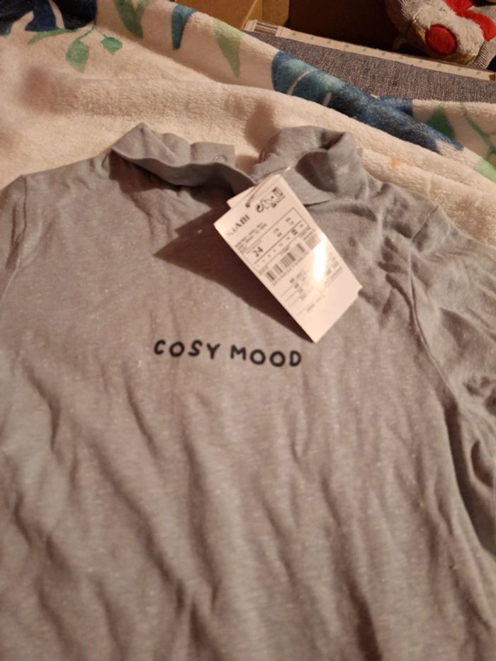 Body avec col et ouverture dans le dos Marque Kiabi Taille 24 mois Couleur bleu gris Message Cosy Mood Neuf avec étiquette Jamais porté #24mois #24moisgarcon #garcon24mois #pingpong1994_24mois #pingpong1994_2ans