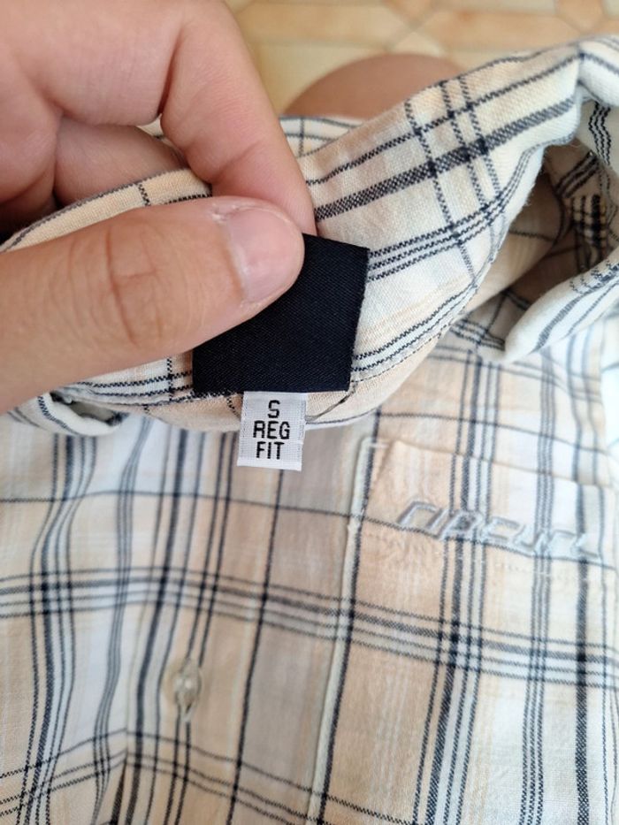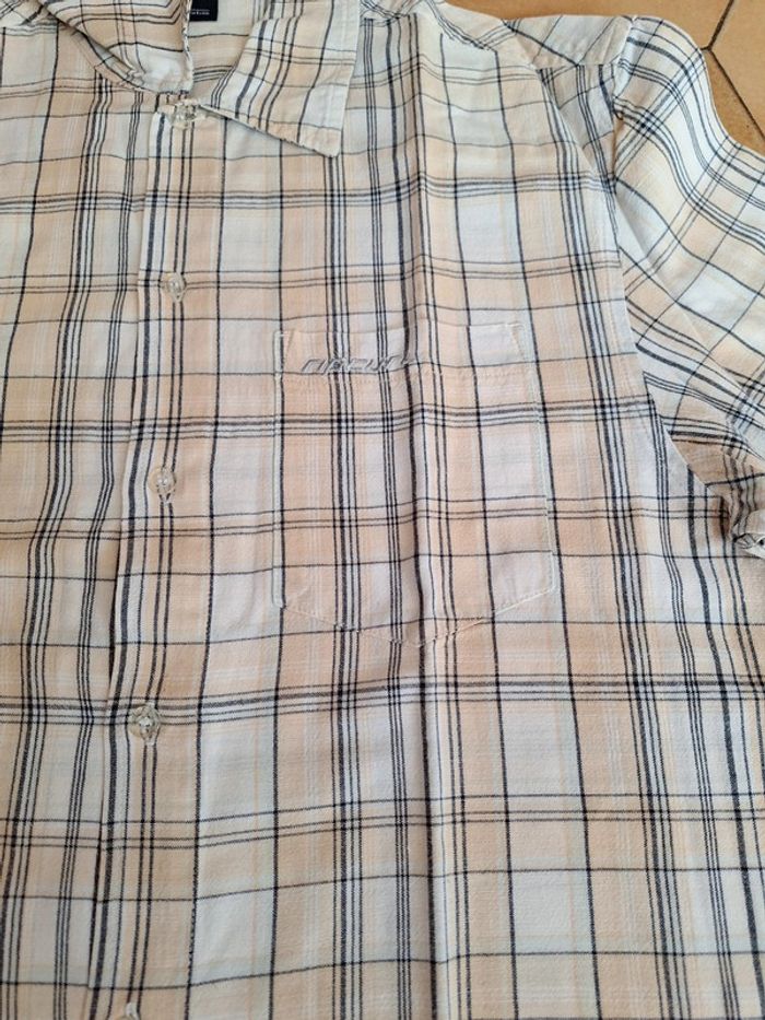 Chemisette manches courtes Marque Rip Curl Très bon état (voir photo) Elle a été lavée et repassée Taille S Regular fit Carreaux beige et bleu marine