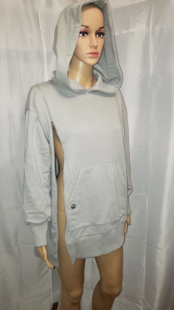 Sweatshirt femme marque Lemoniade couleur gris avec capuche, fermeture zippé, large poche Coton 80 % , Polyester 20 % taille S