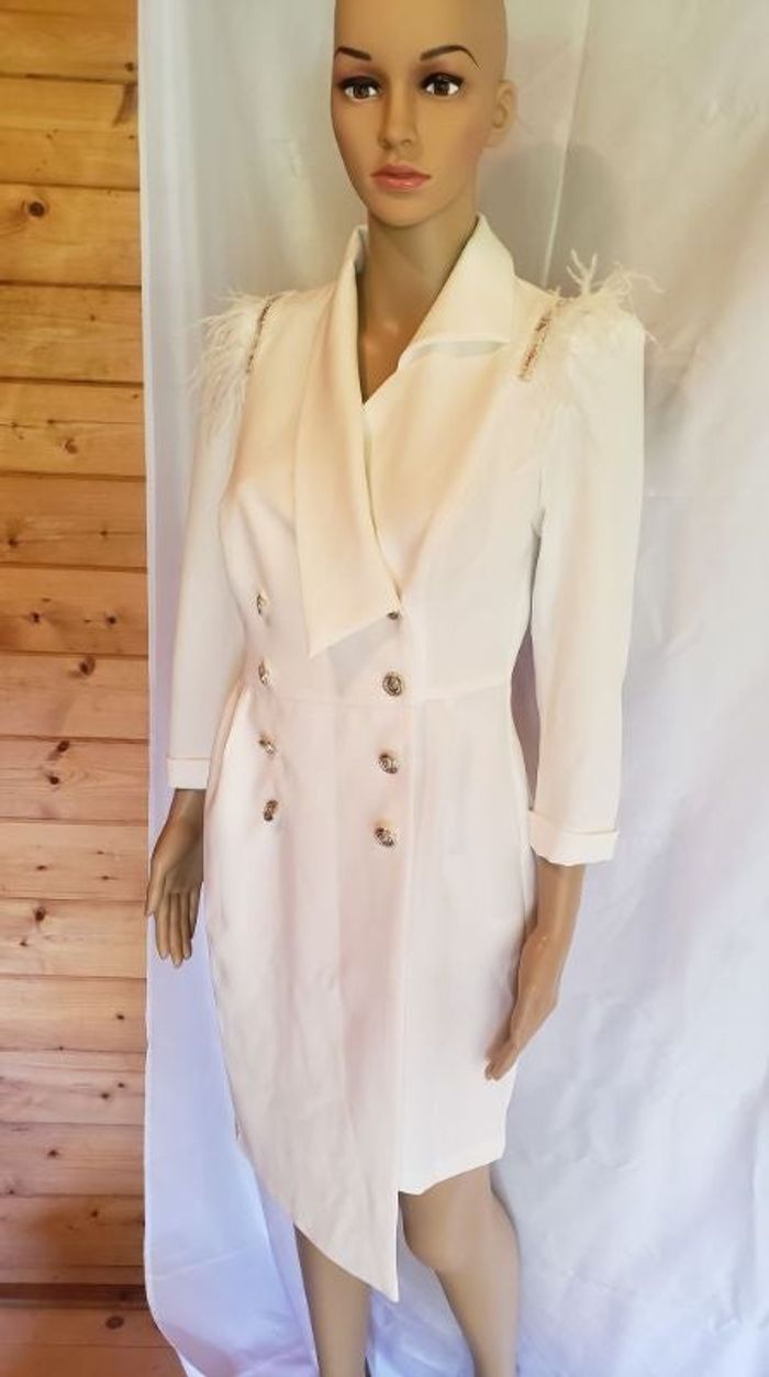 Robe de cocktail de marque Jersa, avec les boutons décoratifs dans une coupe ajustée, avec des manches 3/4 terminées par un revers. Une robe parfaite pour les occasions spéciales