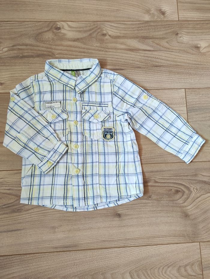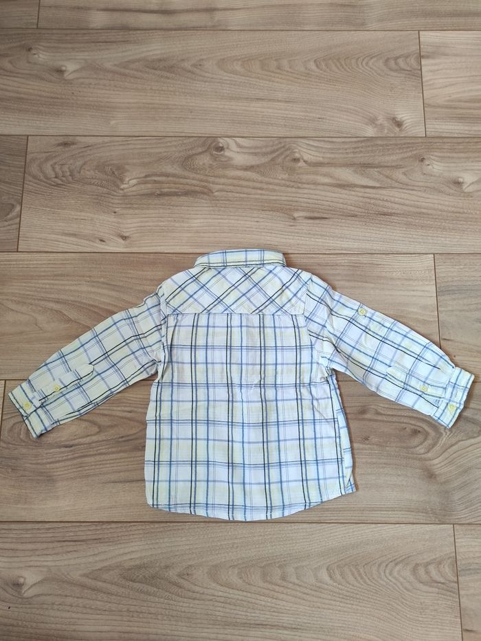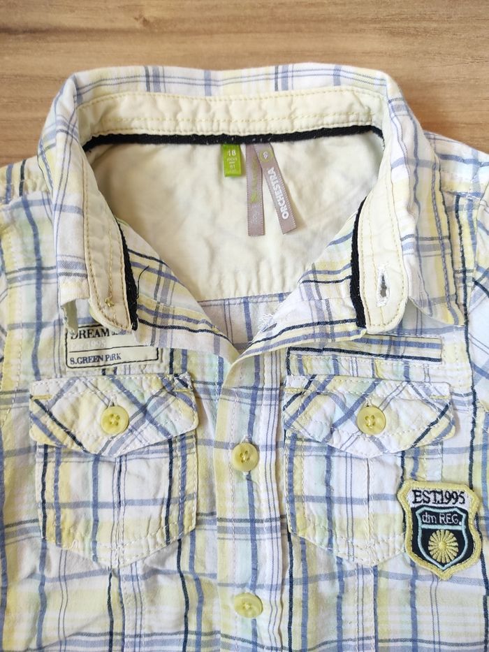 Chemise 18 mois Orchestra . À carreaux bleu/blanc/jaune, 2 poches plaquées sur la poitrine. Manches rabattables.