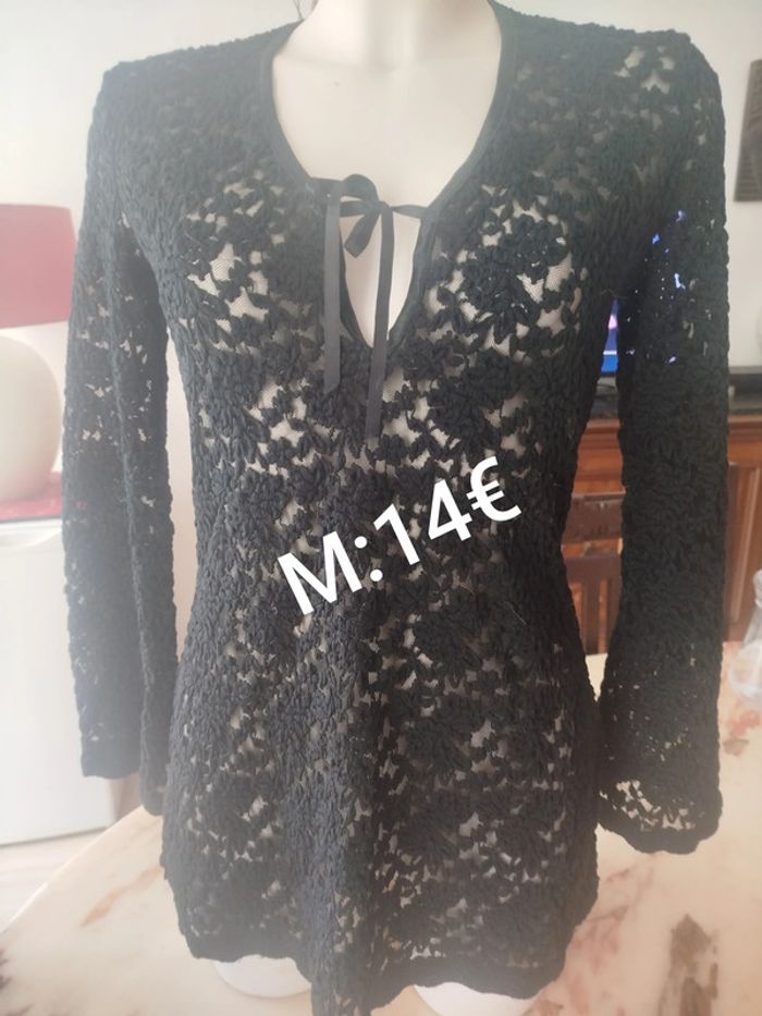 Blouse tunique superbe qualité Broderies sur tulle hyper fin Transparente petit lacet poitrine Manches légèrement évasées et bien finies ainsi que tout le bas Elle est dégriffées donc je ne peux pas vous dire la marque initiale Réduction jusqu'à 30%pour les achats groupés en lots PAS DE VINTED GO