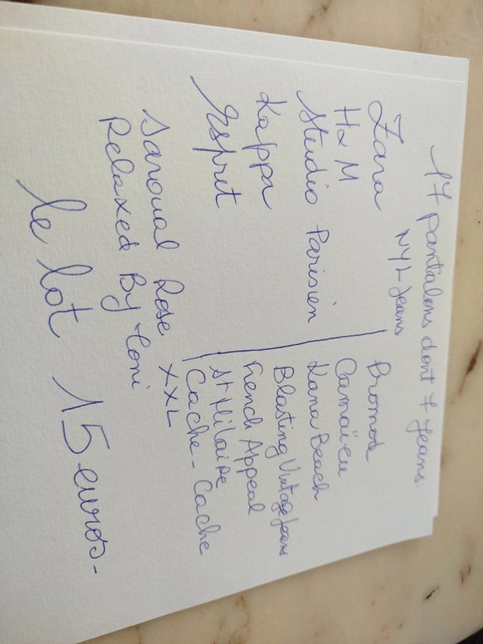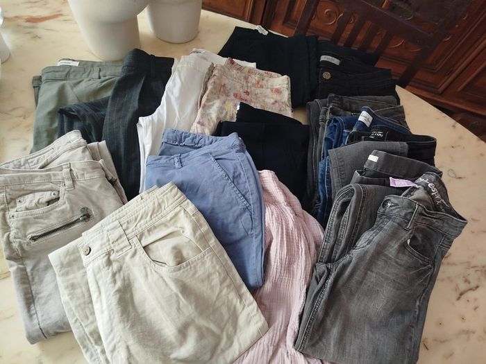 Lot INDISSOCIABLE de 17 pantalons dont 6jeans toutes tailles Marques sur dernière photo Pas de photo portés Pas de Vinted Go Réduction jusqu'à 30%pour les achats groupés en lots 15€le tout PRIX FIXE (pas le prix d'un )