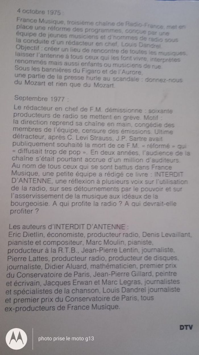 Livre "Interdit d'antenne"par l'équipe démissionnaire de France Musique 1978 Aucun défaut