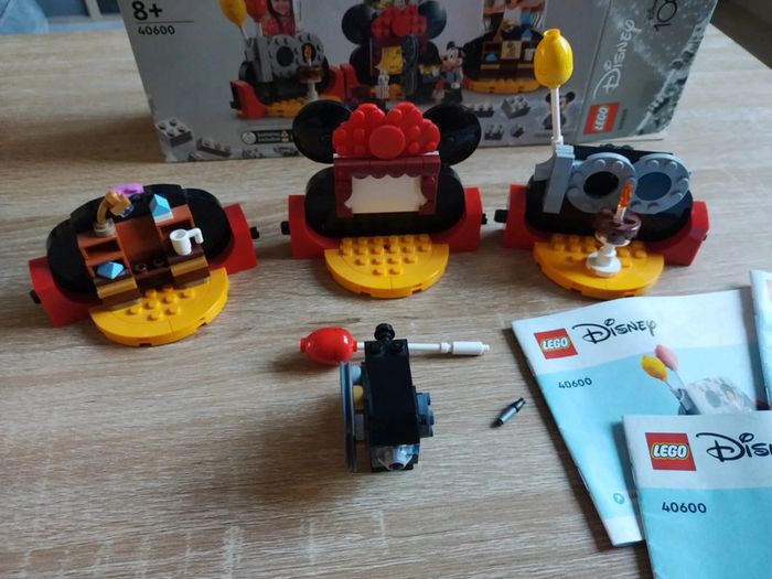 Lego Disney 40600 ÉTAT NEUF ( monté et exposé uniquement) La caméra fonctionne parfaitement ( voir photo 😊) PAS DE MINIFIGS PAS DE SIEGE ET POPCORN PAS DE TABLEAU DE MINNY MANQUE 1 PIÈCE BLANCHE ATTACHE BALLON ( voir dernière photo)