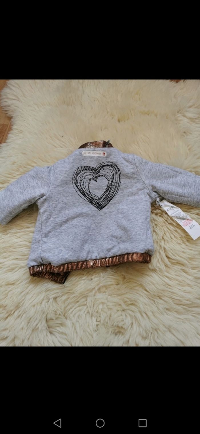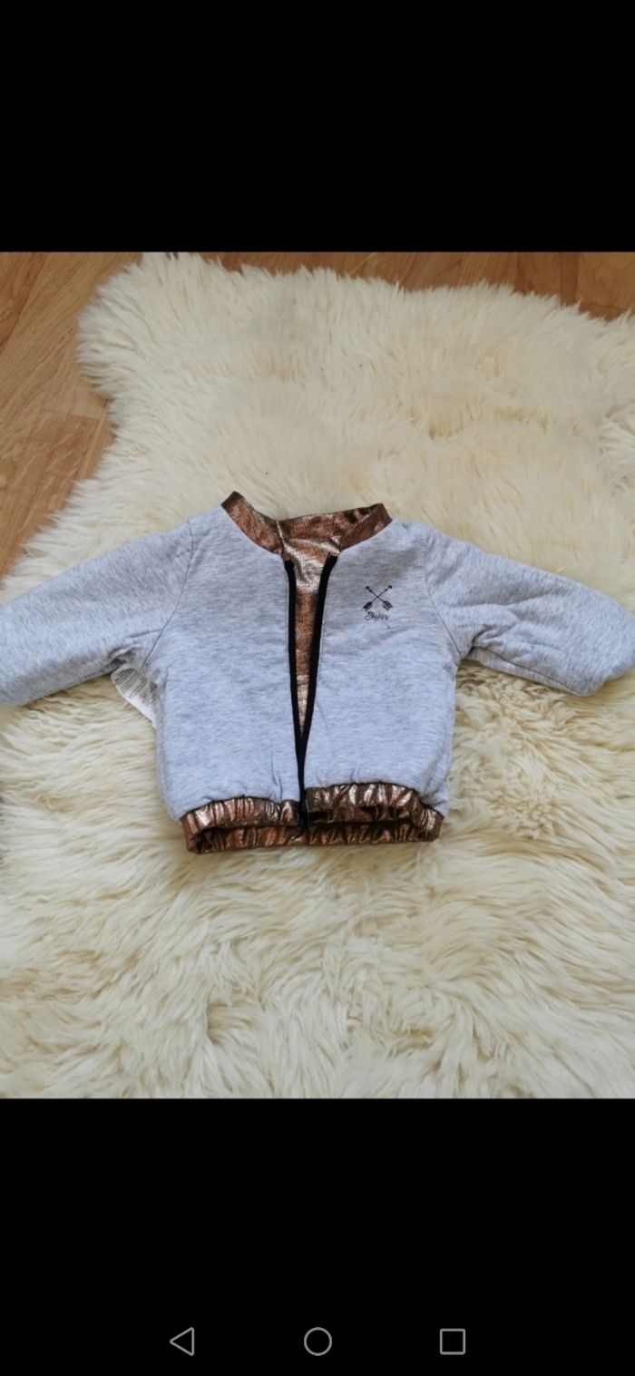 Veste molletonnée en très bon état. Est réversible juste prénom l enfant étiquette. Taille 3 mois taille pas grand. Couleur bronze.