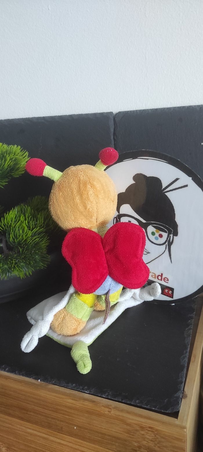 Doudou mouchoir abeille papillon pommette Fleur coccinelle jaune beige vert - photo numéro 2