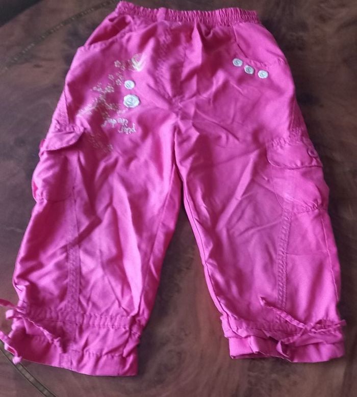 Pantalon fille 18 mois, Couleur rose, bon état, Étiquette un peu effacée, Marque Kiss Melody.