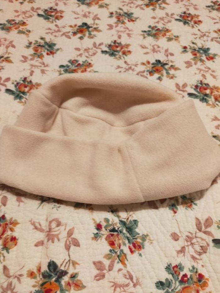 Bonnet fille couleur beige clair bon état qui tient chaud pour l'hiver.