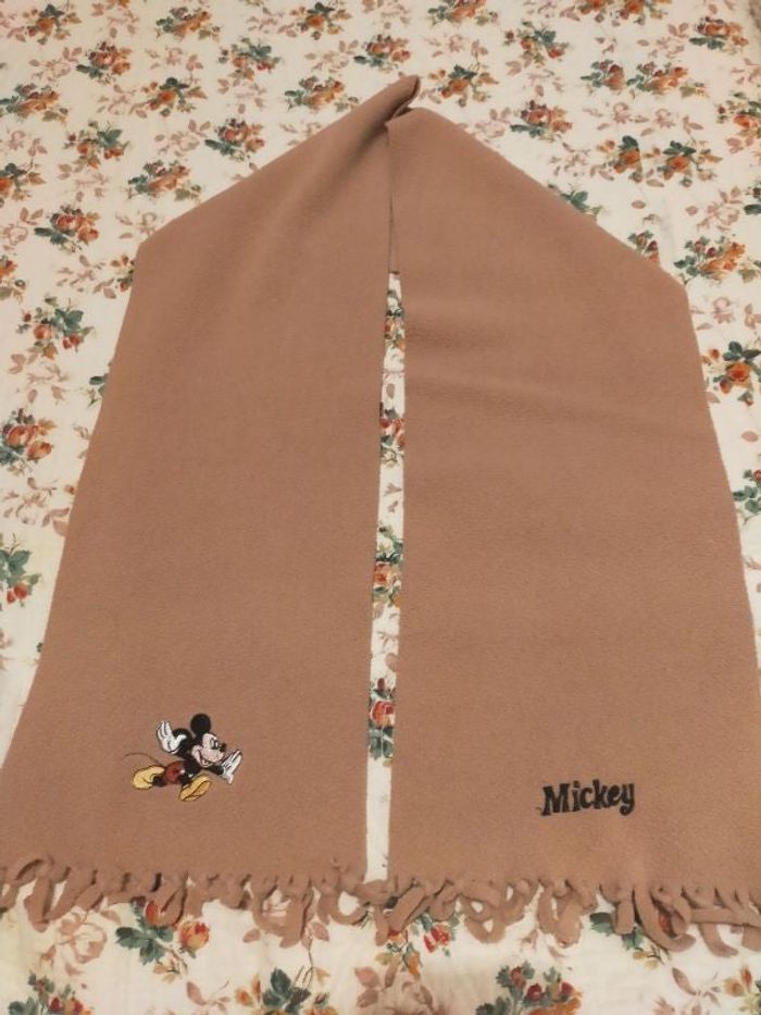 Écharpe Mickey brodé marron clair bon état. Mickey très souriant et en mouvement