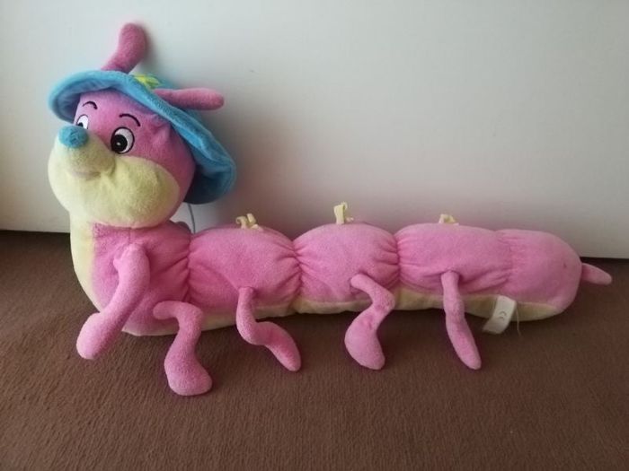 Mille pattes ou chenille. En bon etat a part des petits points d'usure. Mesure 60 cms environ et sans étiquette. Très joli, couleur rose et jaune avec son chapeau bleu.