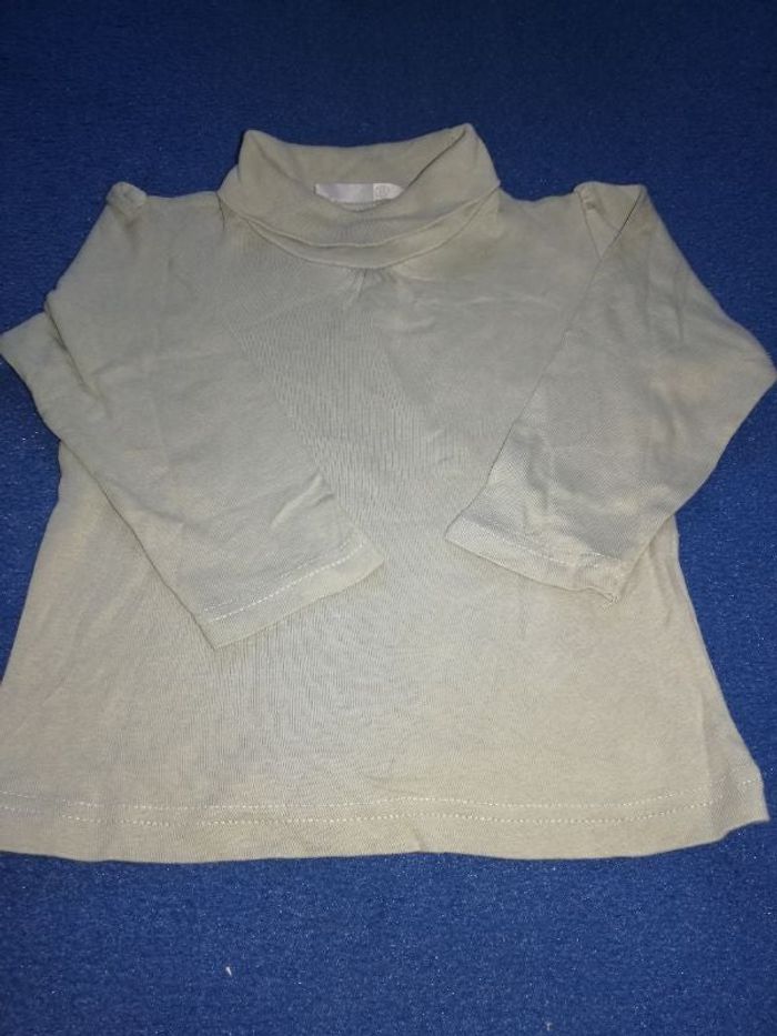 Tee-shirt manches longues col roulé fille 3 ans couleur gris vert bon état.