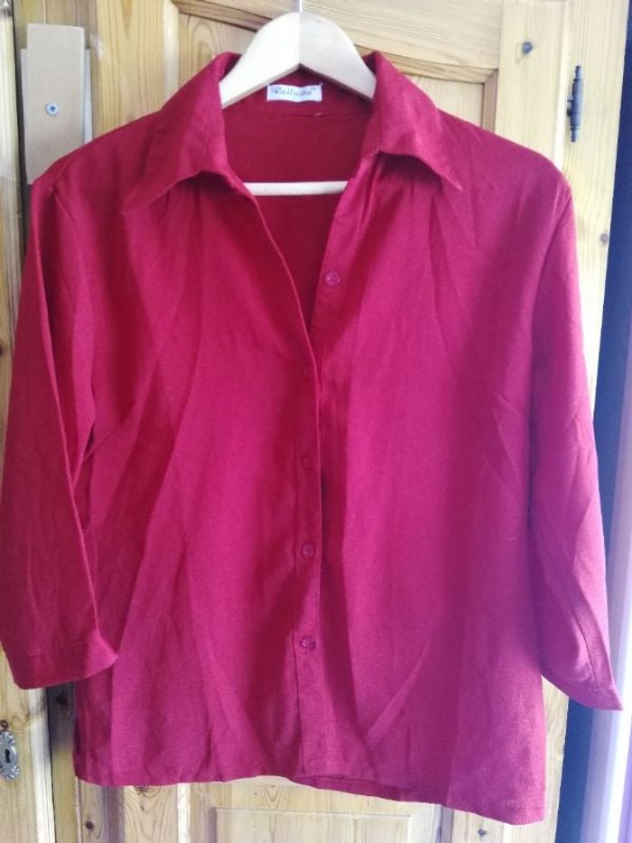 Blouse chemise manches mi longues, couleur rouge,65%linen, 35%cotton, tres bon état marque RUILAIOU
