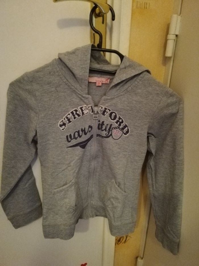Gilet a fermeture éclair avec capuche fille 8ans, couleur gris, très bon état, marque Lisa Rose.