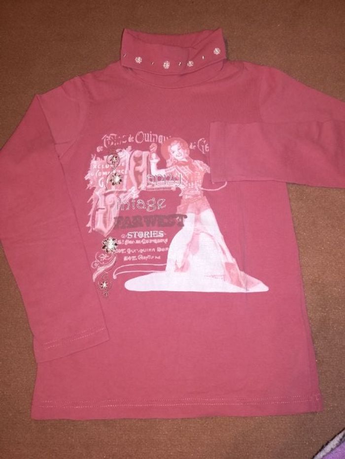 Col roulé avec broderies,fille très bon état,taille 8ans,marque "Tout compte fait" couleur rose foncé.