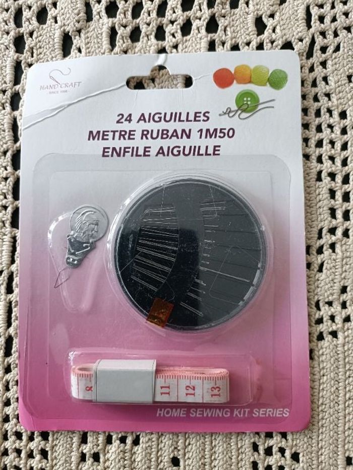 24 aiguilles, 1 mètre ruban d'1.50m et 1 enfile aiguille