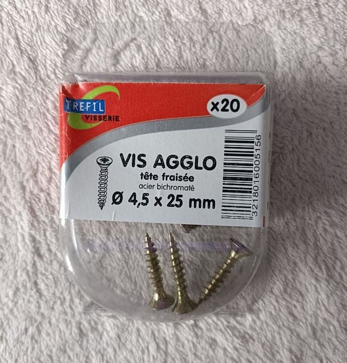 20 vis agglo têtes fraisées de 4.5 X 25 mm en acier bichromaté