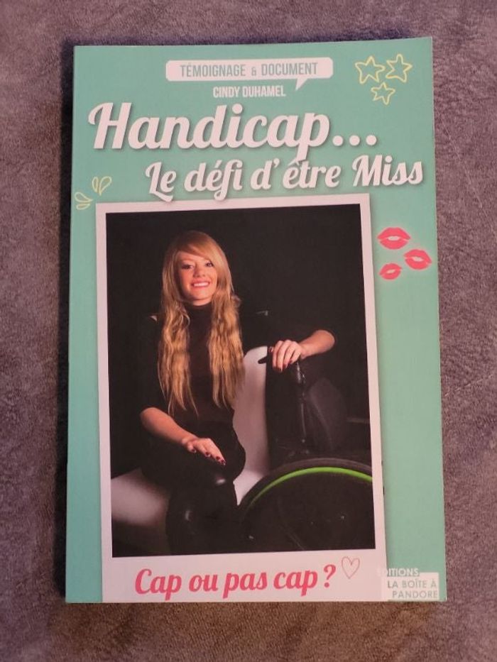 Bonjour, Je vends ce livre nommé - Handicap... Le défi d'être Miss Par Cindy Duhamel - en très bon état. Si vous rechercher un livre ou un acteur en particulier et pour gagner du temps, n'hésitez pas à me le demander, je vous répondrais dès que possible 😇 Veuillez vous abonner pour recevoir toutes les nouveautés Pour autres infos n'hésitez pas à me contacter. ***** Merci de votre visite *****