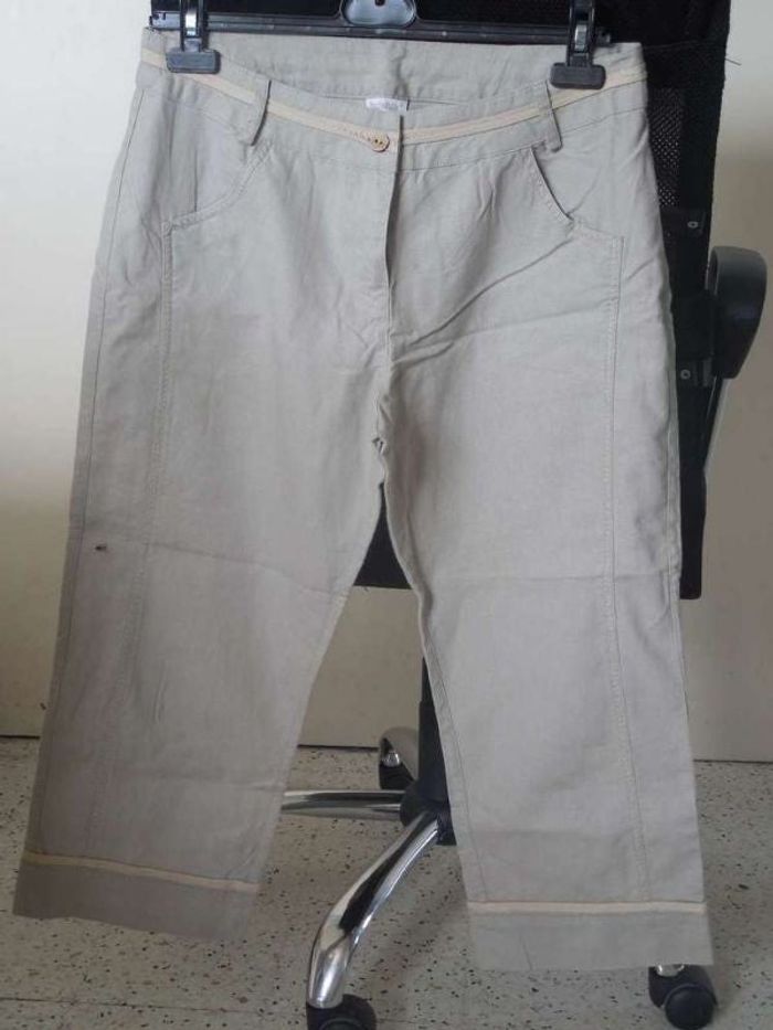 Il est fermé par un zip et bouton, a 2 poches plaquées. Il a un liseré à la ceinture et au bas des jambes largeur taille : 40 cm hauteur totale : 77 cm entrejambe : 54 cm composition : 55% lin et 45% coton N'hésitez pas à regarder mes autres ventes pour profiter des réductions sur mon dressing !