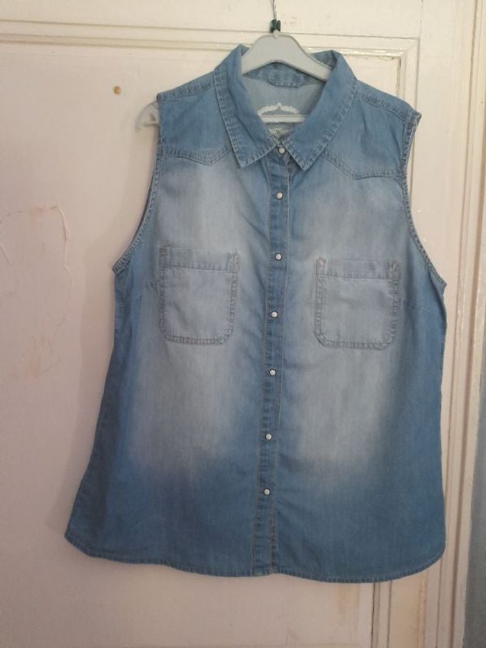 Chemisier sans manches en jean bleu clair délavé, taille L