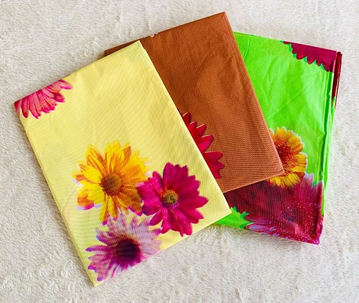 Lot de 3 nappes très légères 3 couleurs dimensions 137 x 183 cm. 3 coloris à fleurs, fond uni : jaune, vert claire et marron. En polyéthylène. Nappes d'été idéales pour le jardin, la terrasse et le balcon. Neuf, sans utilisation, encore dans son emballage d'origine ⛔️ Prix FIXES, NON négociables 🚨 👏🏻 Réductions sur les lots 👍🏻 #nappes #manteles #nappesjardin #cc_divers