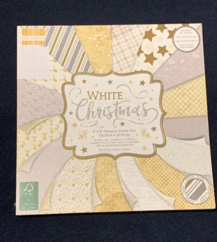 Bloc papier motifs Noel, "White Christmas" 48 feuilles. First Edition 20.32 cm x 20.32cm (8" x 8") 16 designs 3 feuilles de chaque, (moitié recto verso) Quelques feuilles avec de Foil, Glitter et Vernissage UV Très bon état, ouvert mais complet couverture avec une étiquette blanche et une petite tache au verso, comme la photo #blocpapier #noel #scrapbooking #loisirscreatifs