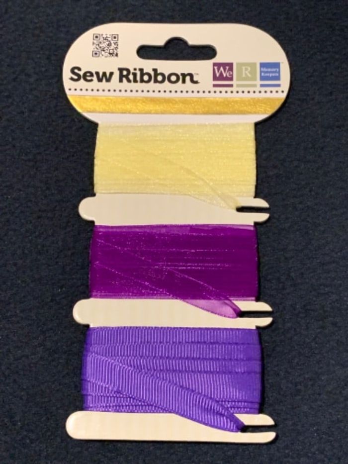 3 Rubans (2 d'organza, 1 tissu) 2 mètres chaqu'un couleurs violet et crème En blister neufs Marque We R Memory Keepers #scrapbooking #scrap #loisirscréatifs #ribbon #ruban