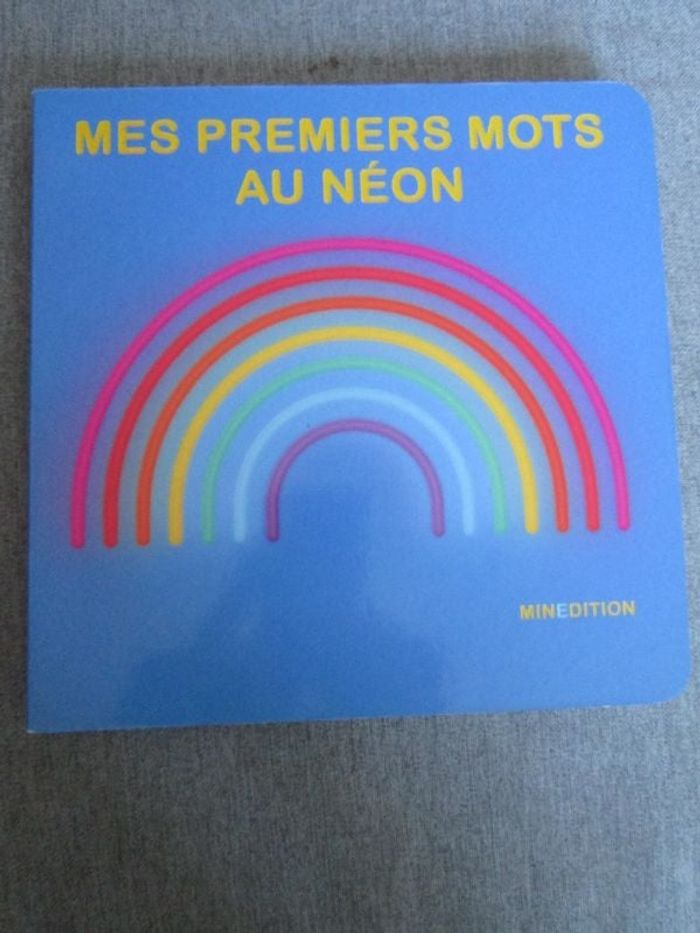 Livre cartonné Un bon moyen pour enseigner aux tout-petits leurs cinquante premiers mots, en néon aux couleurs vives.