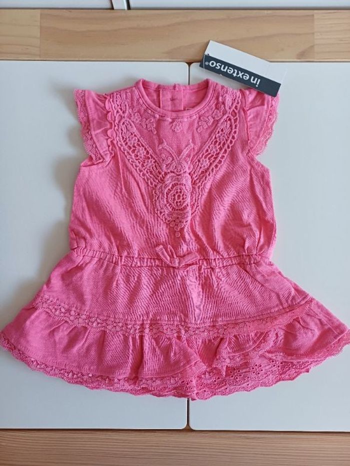 Robe manches courtes Broderie sur le devant de la robe Boutons dans le dos Avec des petits volants