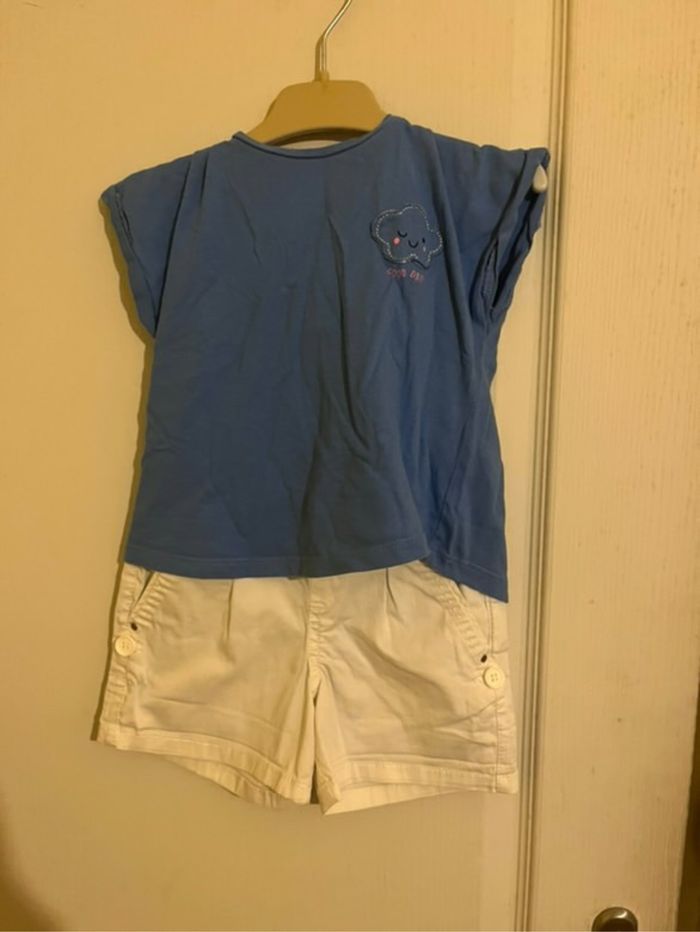 Vends ensemble short blanc + tee-shirt bleu en très bon état. Taille 2/3ans