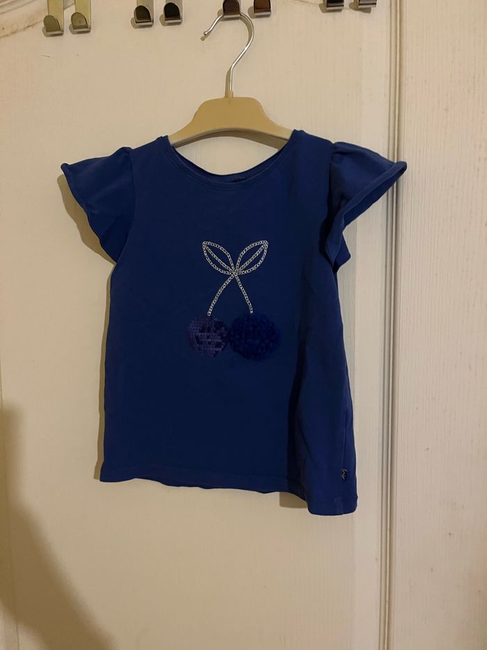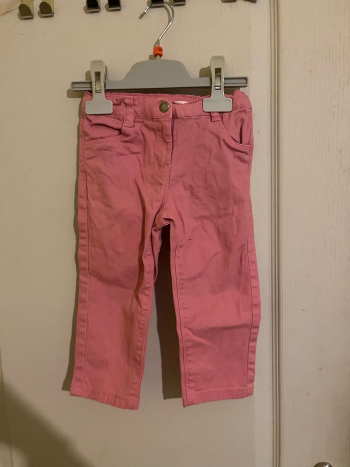 Vends ensemble jean rose+ tee-shirt bleu à motifs en très bon état