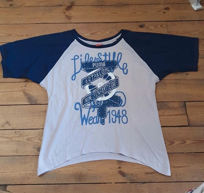 T-shirt blanc et bleu marine Puma 38 - photo numéro 1
