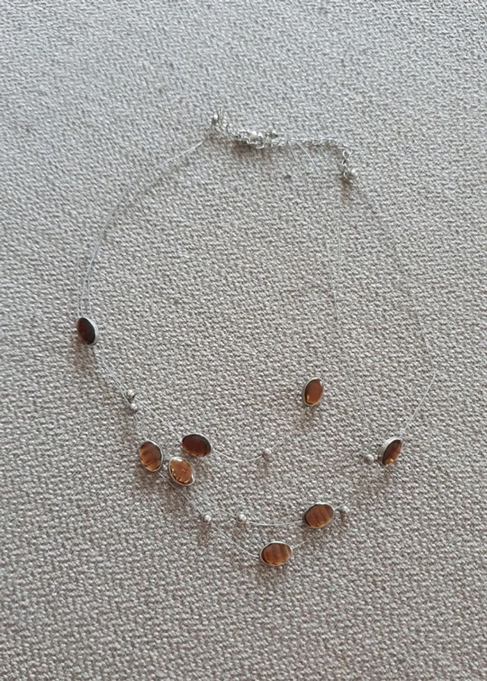 Collier Chaînes fines et perles ambre