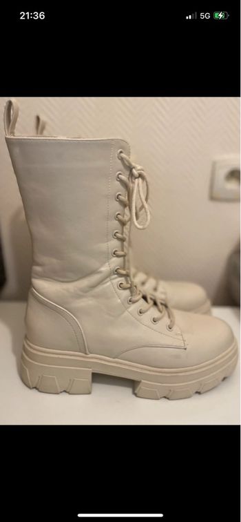 Très jolies bottes bi matière Camel et liseré doré Très bon état portées une seule fois Très confortables mais trop grandes pour moi… Autres articles dans mon dressing