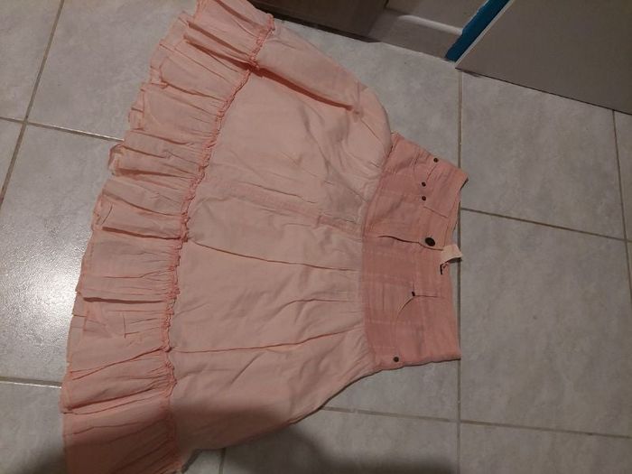 Jupe évasée Matière jean et voile Rose Longueur genoux Doublee