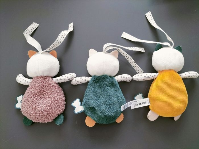 Petites peluches avec différentes matières et textures. Très peu servies . La rose un peu plus que les autres . Aucune tâche, ni trou.