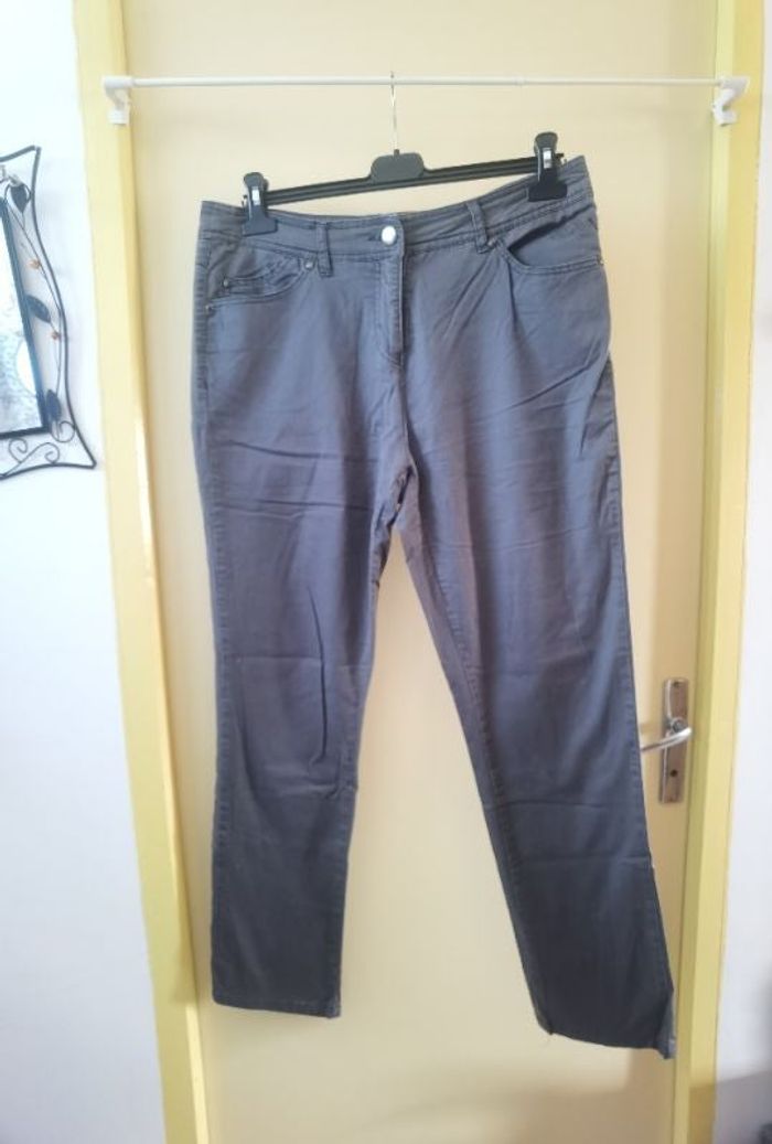 Très souvent porté Taille 42 Jean noir frais. Un peu élastique Bouton et fermeture éclair 3poches devant dont 1petite et 2 poches derrière Légère trace de griffure (voir photo) #carolinevêtementsxl #carolinepantalon #carolinejean #jean