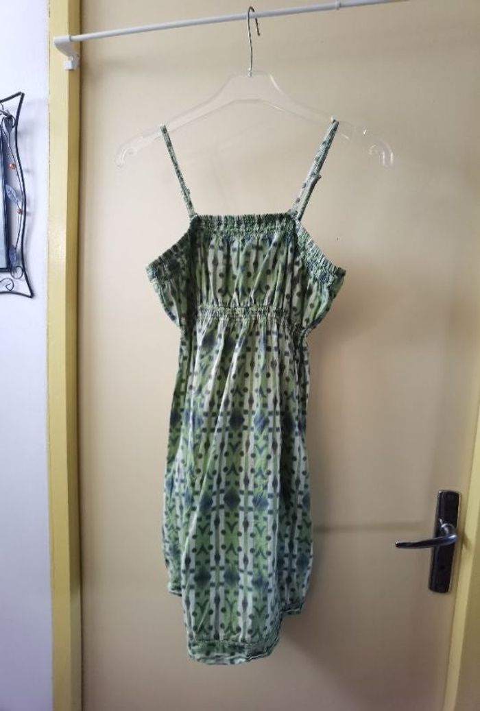 Acheter à une Vendeuse mais ne me correspond pas Taille 36 3 SUISSES élastique dans le dos, à la poitrine et à la taille Bretelles réglables et amovibles. Couleur verte à motif Pas de défaut constaté #carolinevêtementsS #carolinerobe #robe