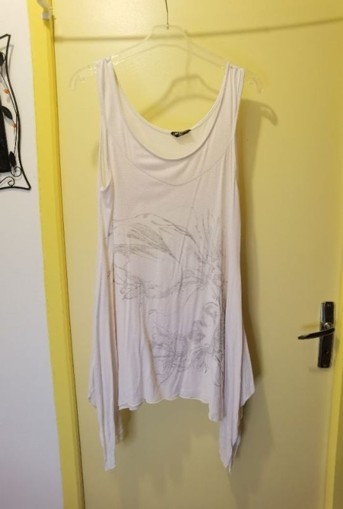 Souvent porté Taille XXL 46 Matière élastique, fluide. Dessin d'une femme Couleur blanc. Pas de défaut constaté #carolinevêtements2XL #carolinehaut #débardeur #tunique