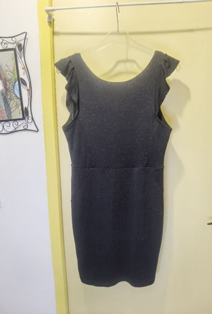 Peu portée Taille L Tissu élastique Couleur noir pailleté Un peu col V dans le dos Pas de défaut constaté #carolinevêtementsL #carolinerobe #robe #robenoirepailleté