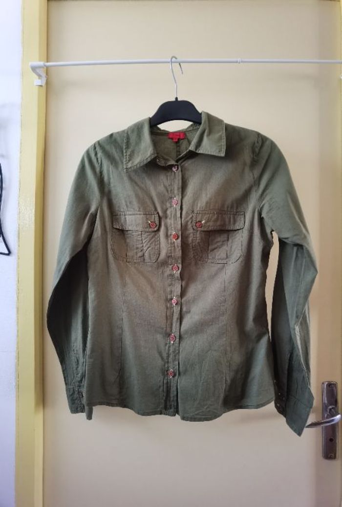 Peu portée Taille 38 TISSAIA #carolinevêtementsM #carolinehaut Chemise kaki 2 poches Matière 100% coton Pas de défaut constaté