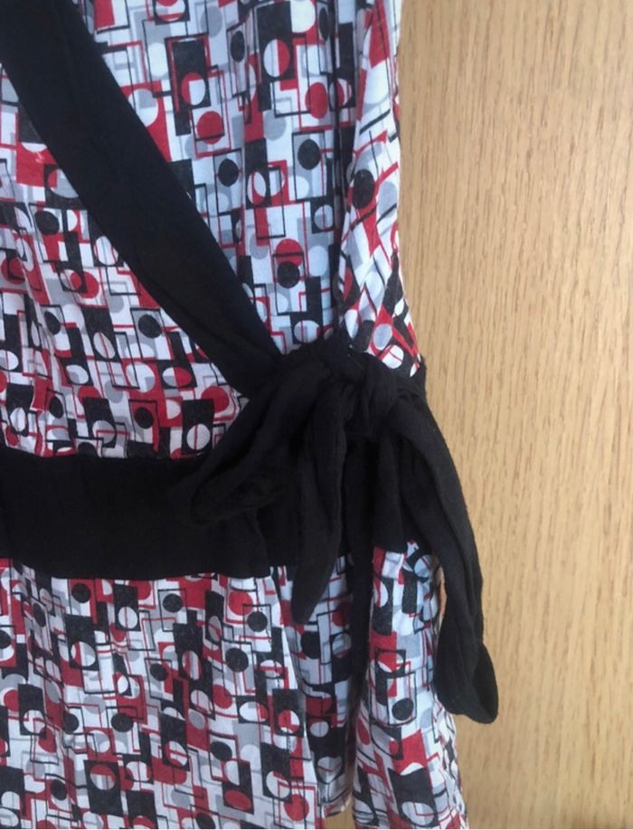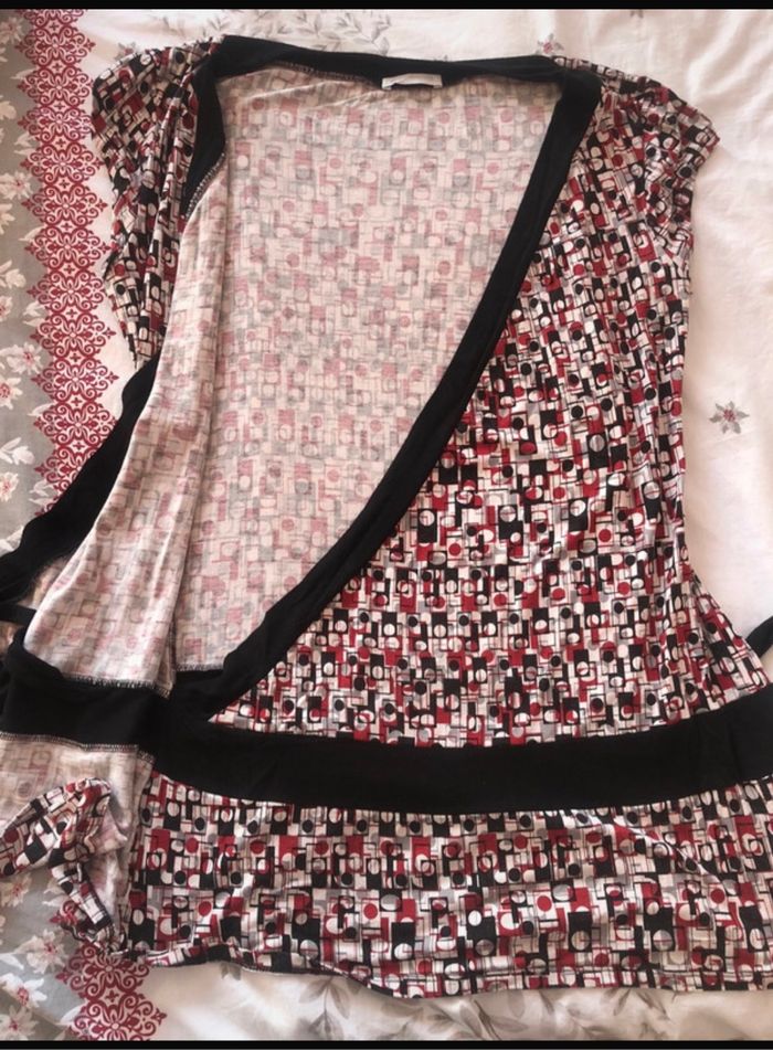 Dimensions : longueur 74cm / largeur entre aisselles 48cm / largeur épaule 39cm. Fermeture avec lien à nouer sur le côté.