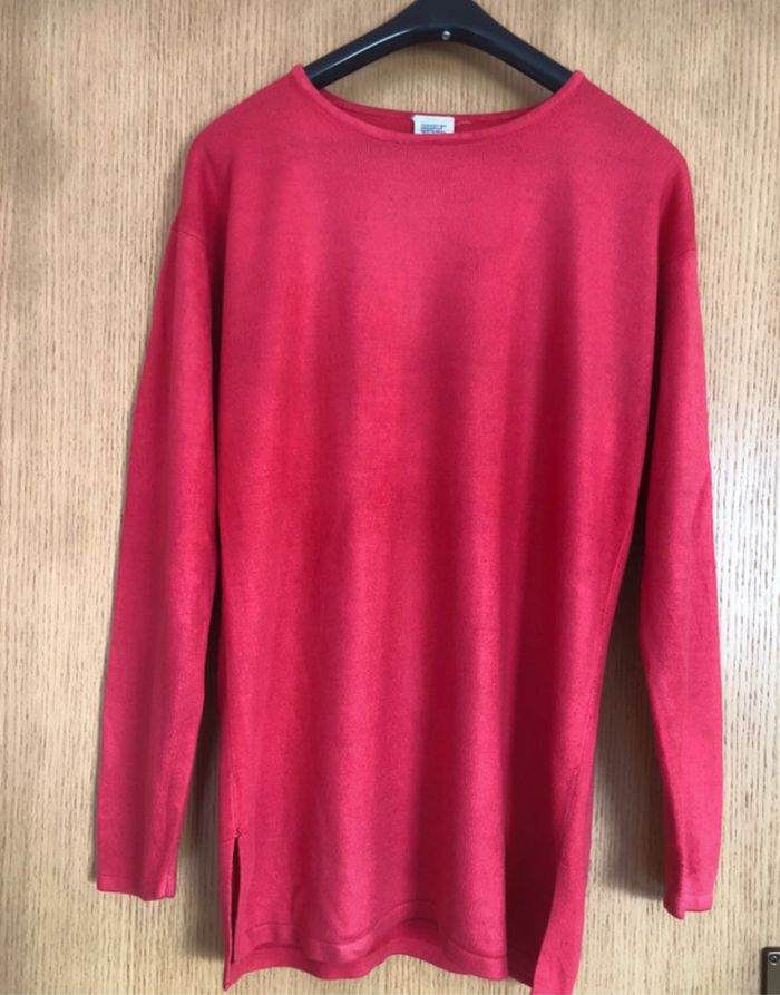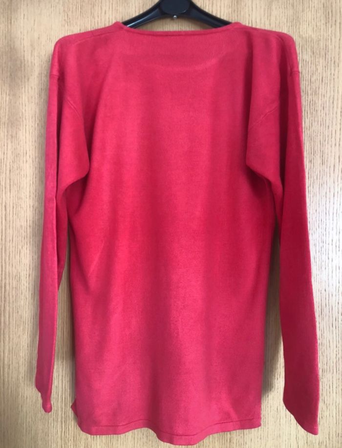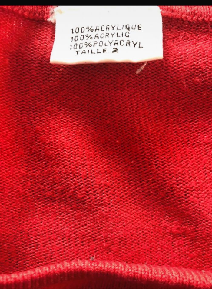 Dimensions : longueur 77cm / largeur 52cm / largeur épaule 55cm. Bon état sauf un peu bouloché à l’arrière du pull(voir dernière photo).