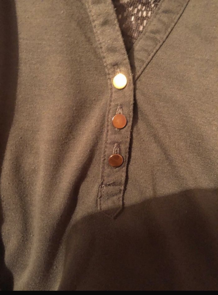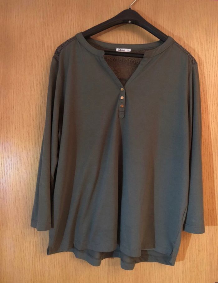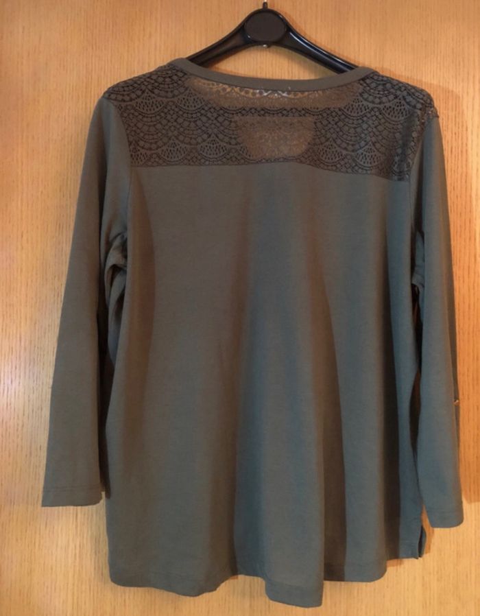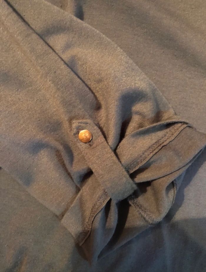 Liens intérieurs dans les manches pour les retrousser si besoin. Dimensions : longueur 60cm / largeur entre aisselles 57cm / largeur épaule 42cm. 2 boutons recousus (1 à la manche / 1 au col) mais non visible porté.