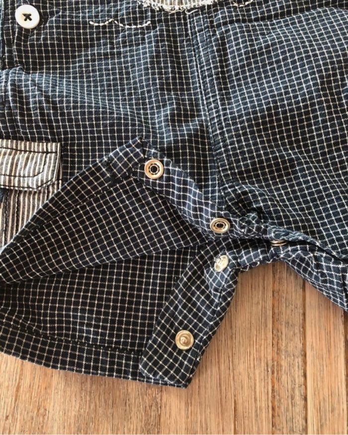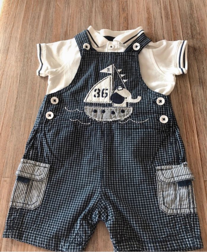 Polo + salopette boutons pression à l’entrejambe.