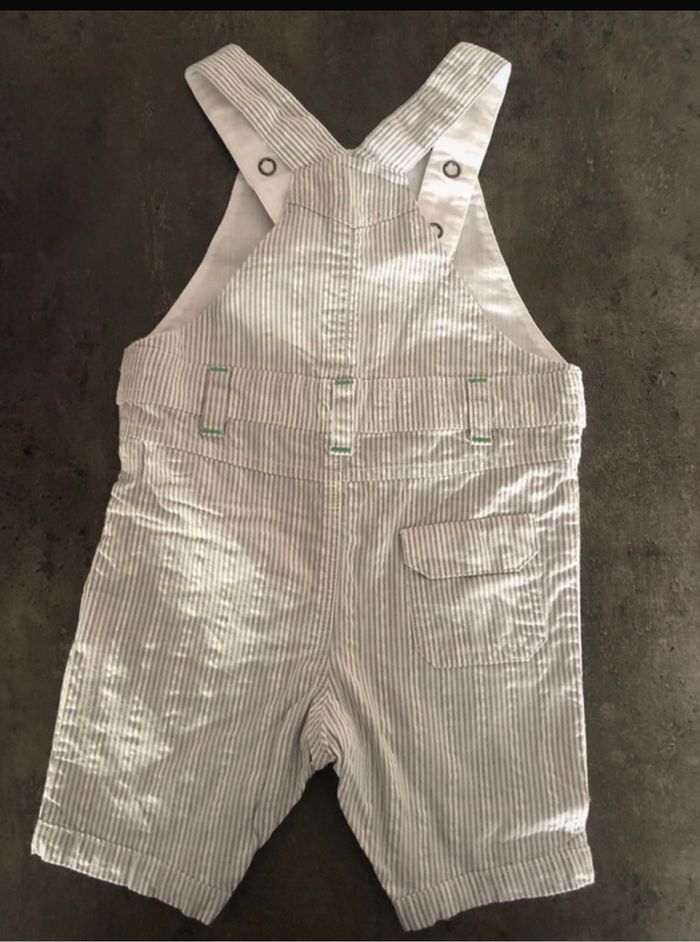 salopette à bretelles et boutons pression à l’entrejambe + pull fermeture boutons pression au dos.