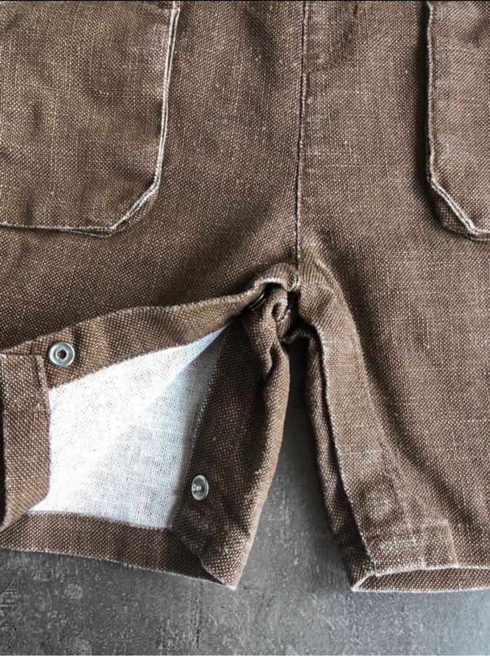 Fermeture bretelles et boutons pressions à l’entrejambe.